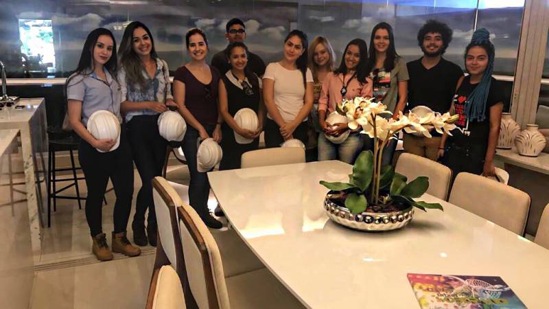 Com a localização da obra no mesmo lote do Stand de vendas, os alunos aproveitaram a oportunidade para visitar os ambientes decorados da empresa, sendo, a sala comercial do Urban Futuro e o apartamento de ouro empreendimento da incorporação e assim entender o papel do arquiteto desde a elaboração e execução de projetos até a decoração dos ambientes através da arquitetura de interiores.