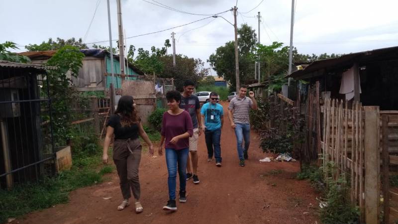 As equipes, juntamente com os professores Fernanda Abreu e Thyago Freitas, realizaram uma visita técnica orientada ao setor Santo Amaro. O objetivo da visita foi fazer um reconhecimento da área e explanação sobre o processo de regularização fundiária ocorrido naquele bairro.