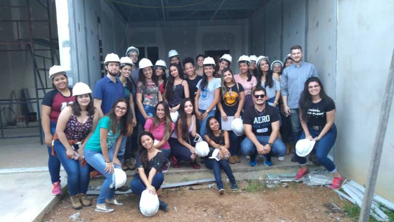 O representante da empresa Leon Sistemas Construtivos o tecnólogo em construção de edifícios Sergio Noleto esclareceu ainda dúvidas apresentadas pelos discentes com relação as etapas de vedação e conceitos estruturais que foram implantados no projeto.