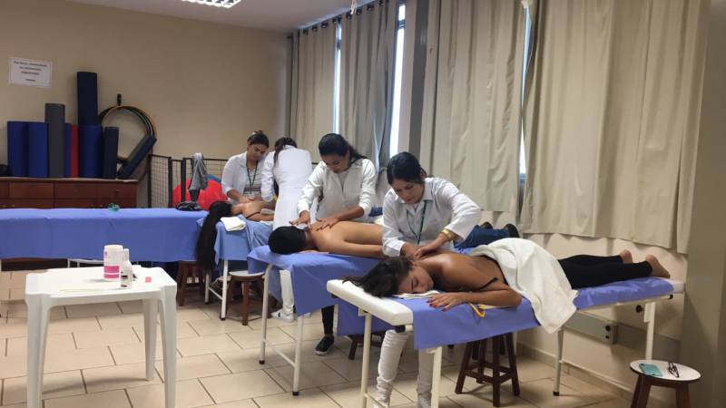 Ao finalizar a meditação, em parceria com o curso de Fisioterapia, os acadêmicos receberam massagem relaxante no Complexo Laboratorial, realizada pelos acadêmicos de fisioterapia, sob a orientação da professora Luciana Fernandes Maia.