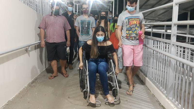 A disciplina promoveu uma aula prática com acadêmicos dos cursos de Arquitetura e Urbanismo e de Engenharia Civil, cujo objetivo foi fomentar a sensibilização para a temática, além de demonstrar alguns procedimentos embasados nos conceitos de inclusão.