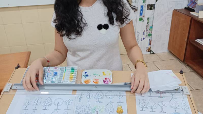 Os alunos visualizaram processos com lápis de cor, canetinhas e até aquarela, tanto para vistas e plantas de árvores e pisos e que dão um efeito bem bacana no desenho à mão livre.