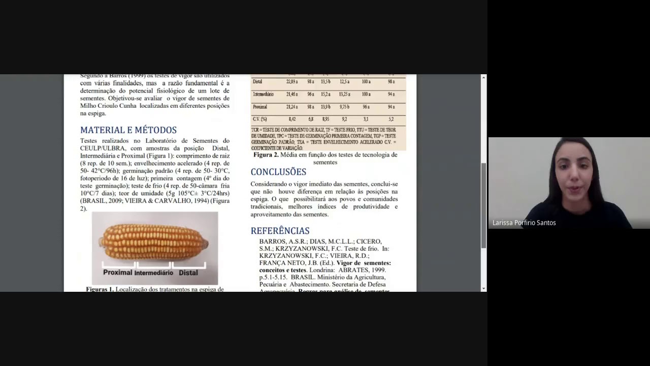 VIGOR DE SEMENTES MILHO CRIOULO CUNHA LOCALIZADAS EM DIFERENTES POSIÇÕES NA ESPIGA
