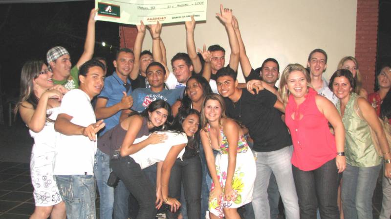 Equipe diamante comemora o primeiro lugar na gincana O CEULP/ULBRA e a Rádio Araguaia FM comemoraram o sucesso de mais uma edição do projeto Akádemo em festa na última sexta, dia 21, anunciando a equipe vencedora de dois dias de gincana solidária.Com objetivo de substituir os trotes violentos por ações de cidadania e solidariedade entre os calouros e veteranos do CEULP/ULBRA, o Akádemo chegou ao fim da sétima edição com a satisfação de ter sido uma gincana que permitiu aos acadêmicos iniciar essa nova fase da sua vida de forma saudável, descontraída e cidadã.Divididos em duas equipes, Diamante e Rubi, os estudantes praticaram durante todo o dia 20/08, atividades no Complexo esportivo e no Clube da Ulbra, orientados por Bombeiros, Exército, oficiais da Marinha e professores do CEULP/ULBRA.A iniciativa teve continuidade no dia 21, com um alegre café da manhã na APAE - Associação de Pais e Amigos dos Excepcionais. A manhã foi marcada pela realização de uma passeata na Avenida JK em prol da conscientização sobre a "Acessibilidade dos Excepcionais". Alunos e professores da APAE, e participantes do Akádemo caminharam pela avenida entregando panfletos e chamando atenção da sociedade para a inclusão social.A tarde de sexta-feira contou com as provas de arrecadação de alimentos e doação de sangue no Hemocentro.A noite, todos os participantes e parceiros se reuniram no Clube da Ulbra para uma grande confraternização. A comemoração contou com a presença de autoridades estaduais, municipais e seculares. A premiação foi entregue pela diretora do CEULP/ULBRA Kelen Beatris Lessa Mânica junto com os patrocinadores e autoridades presentes para a equipe Diamante.O projeto arrecadou 963Kg de alimentos, entre alimentos arrecados por acadêmicos e doação de empresa parceira. O Akádemo também contribui com 09 doação de sangue no Hemocentro de Palmas e alguns frascos de leite.