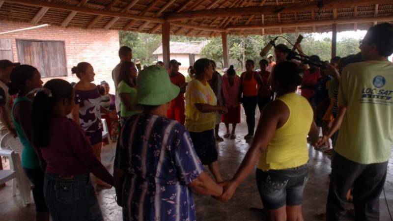 O projeto Voz e performance na tessitura das palavras e do capim dourado: as manifestações de artesãos do TOCANTINS continua sendo desenvolvido na Comunidade Mumbuca, no Jalapão. De 01 a 04 de abril, juntaram-se ao músico Josino Medina o cinegrafista Samuel, responsável por coletar imagens para a edição de vídeo, a pesquisadora Maria de Fátima Rocha Medina e o também músico, Toninho Borges, que levou equipamentos para captar vozes e sons com a finalidade de produzir CD com registros dos mumbuquenses.Nesse período, várias rodas aconteceram de acordo com a vontade e a disponibilidade dos moradores. A cada momento de cantoria diante dos equipamentos de captação, novos participantes apareciam, espontaneamente. Se por um lado o rodízio dificultou o trabalho, por outro foi uma riqueza, visto que circularam pelas rodas desde crianças e adolescentes a jovens, adultos e idosos, de ambos os sexos.Além da gravação, durante a permanência da equipe no povoado, pessoas mais experientes como Santinha, Martina e Dona Miúda continuaram a transmitir outras cantigas de roda que elas cantavam na infância e adolescência, especialmente na época da colheita do arroz, e que eram desconhecidas pelos mais novos. Entrevistas realizadas com esses e outros informantes, como Doutora e o pastor do lugar, foram momentos de viagem ao passado e oportunidade de conhecer um pouco mais a comunidade quilombola.Santinha se emocionou ao falar das dificuldades e dos sofrimentos pelos quais passaram seus antepassados. E comentou que foi uma surpresa para os irmãos o fato de ela ter recordado e continuar recordando de tantos tesouros poéticos que estavam adormecidos, caindo no esquecimento. A sexagenária afirmou que, desde as primeiras provocações da equipe do projeto, especialmente a partir da presença do músico Josino Medina, tem sido gratificante ouvir crianças e jovens cantarem os versos que ela já transmitiu, como pula, pula, piabinha; calango verde; abra a roda, gente e tantos outros.Dois fatos merecem registro especial: a participação das duas mais idosas, Dona Laurentina e Dona Miúda, juntas, em uma roda com a presença de três gerações. E o alegre vigor que a violinha de buriti proporcionou à comunidade, inclusive entre os garotos pré-adolescentes, após Arnon e Maurício voltarem a fabricá-las desde janeiro, quando a equipe esteve em Mumbuca.Nesse clima, é importante que o CD a ser devolvido aos moradores possa estimulá-los a praticarem as performances das cantigas de rodas e demais canções gravadas. Assim, o que estava adormecido na memória dos mais velhos pode voltar a ser funcional na comunidade.