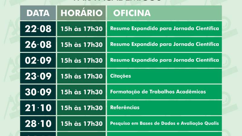 O Laboratório de Apoio à Instrumentalização Científica – LAIC oferece para acadêmicos de todos os cursos da instituição, de agosto a novembro deste ano, oficinas que visam auxiliá-los desde a confecção até a formatação de trabalhos quanto às normas técnicas exigidas.