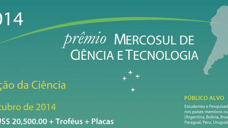 Estão abertas as inscrições para o Prêmio Mercosul de Ciência e Tecnologia – edição 2014. O evento conta com o tema “Popularização da Ciência” e será dividido em quatro categorias: iniciação científica, estudante universitário, jovem investigador e integração.