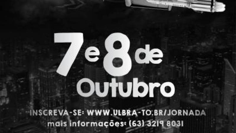 Neste ano nos dias 7 e 8 de outubro, acontece a XIV edição do evento, com o tema “Popularização da Ciência”. Para participar da Jornada é necessário fazer inscrição no site ulbra-to.br/jornada.