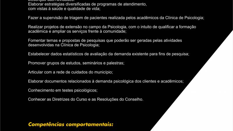 - Zelar pelos cumprimentos das disposições legais e éticas da profissão e do funcionamento do Serviço de Psicologia;