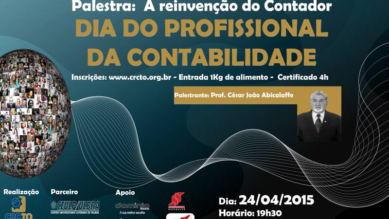 O Curso de Ciências Contábeis do Centro Universitário Luterano de Palmas – CEULP/ULBRA em parceria com o Conselho Regional de Contabilidade – CRC realiza uma palestra no dia 24 de abril, às 19h30, no Auditório Central do CEULP.