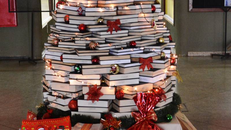 O Ceulp/Ulbra inova na decoração de Natal e faz duas “Árvores do Conhecimento”com livros e trabalhos científicos. Na biblioteca Martinho Lutero mais de 500 Trabalhos de Conclusão de Cursos (TCC) foram utilizados para montagem da árvore do conhecimento, todos os trabalhos dos cursos de engenharia civil, direito, serviço social, ciências contábeis que compõem a árvore são duplicados.