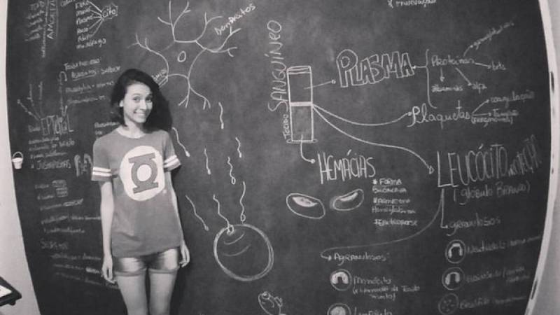 A acadêmica do 1º período do curso de Enfermagem do Centro Universitário Luterano de Palmas – Ceulp/Ulbra , Bruna de Oliveira Welte, uniu a criatividade ao aprendizado e atualmente transformou uma parede da casa em um quadro negro.
