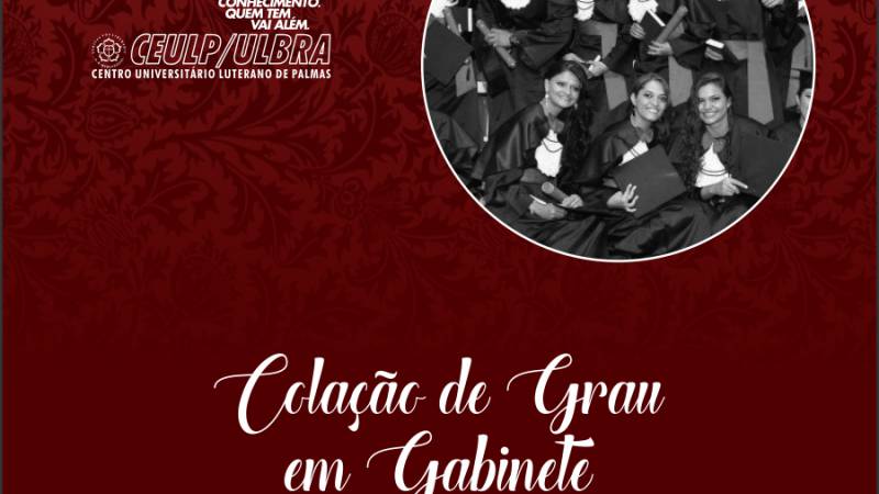 O Centro Universitário Luterano de Palmas, CEULP/ULBRA, encerra na próxima quinta-feira (11), o ciclo de formaturas 2016/1 com a colação de grau em gabinete que ocorrerá às 9h, no auditório central da instituição. A solenidade contará com a presença do Reitor Adriano Chiarani da Silva, do capelão Ari Schulz e dos coordenadores de curso.