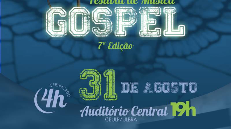 Acontece no dia 31 de agosto de 2016, às 19h, no auditório central do Centro Universitário Luterano de Palmas – CEULP/ULBRA, a VII edição do Festival Gospel. A ação tem por objetivo proporcionar a comunidade acadêmica e colaboradores da instituição, um momento de louvor a Deus, além de despertar talentos musicais.