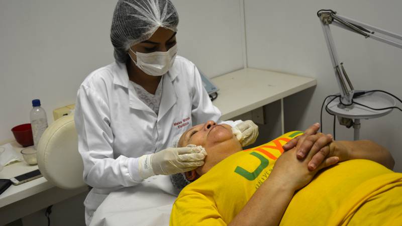 A atividade contou com procedimentos de higienização facial, hidratação, fotoproteção, como também massagens voltadas para o relaxamento.