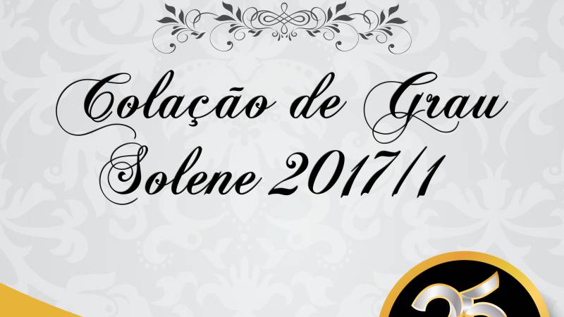 A colação de grau em gabinete para os formandos de 2017/1 acontecerá no dia 16 de agosto de 2017, às 09h, no auditório central da instituição.