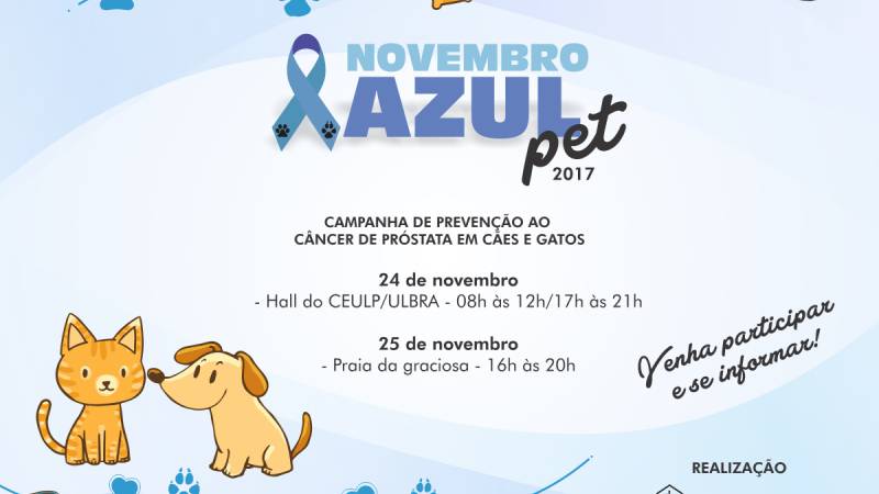 O Centro Universitário Luterano de Palmas – Ceulp/Ulbra realiza nos dias 24 e 25 de novembro a campanha de prevenção ao câncer de próstata em cães e gatos – Novembro Azul Pet.