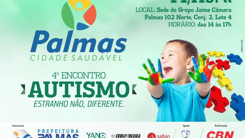 Será realizado no dia 14 de abril de 2018 o 4º encontro do projeto Palmas Cidade Saudável. Com o tema “Autismo – Estranho não, diferente”, a ação acontece a partir das 14h na sede da TV Anhanguera.