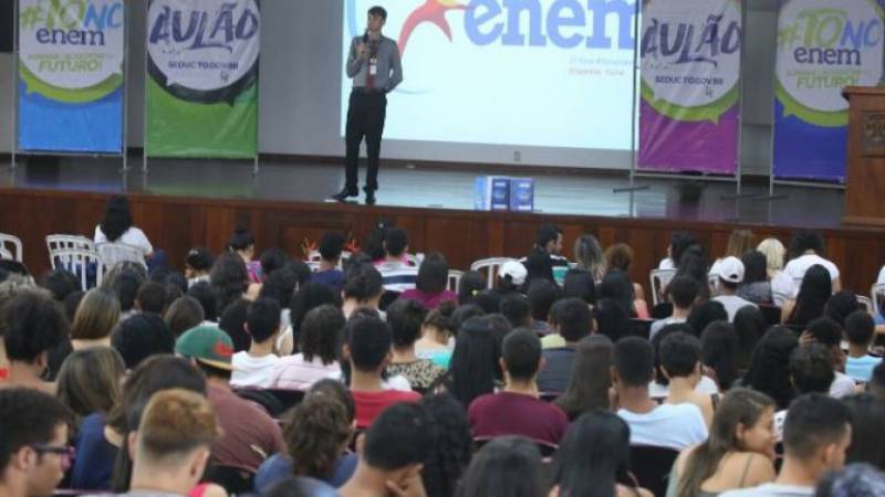 A Secretaria de Estado da Educação, Juventude e Esportes (Seduc) realizou no sábado, 12, em parceria com o Centro Universitário Luterano de Palmas (Ceulp/Ulbra), o primeiro Aulão do Projeto #ToNoEnem2018. A ação tem como objetivo preparar os alunos da 3ª série das unidades educacionais para o Exame Nacional de Ensino Médio (Enem), que ocorre nos dias 04 e 11 de novembro de 2018.
