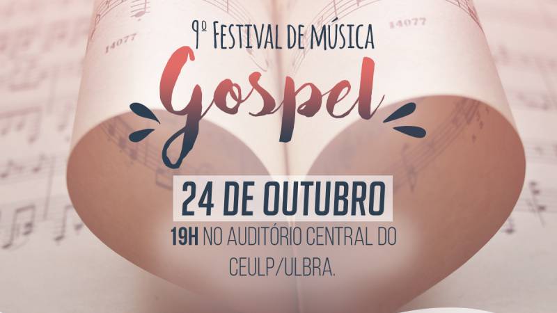 O Centro Universitário Luterano de Palmas por meio da Pastoral Universitária realiza no dia 24 de outubro de 2019, a partir das 19h, a 9ª edição do Festival Gospel. O evento acontece no auditório central e tem como objetivo incentivar e desenvolver a cultura musical, revelar talentos, valorizar os artistas, e principalmente incentivar o louvor a Deus.