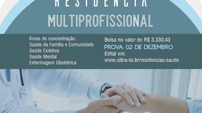 A Comissão de Residência Multiprofissional em Saúde do Centro Universitário Luterano de Palmas (COREMU/Ceulp) e a Fundação Escola de Saúde Pública de Palmas (FESP) por meio do Sistema Integrado Saúde Escola para o SUS (SISE-SUS) do município de Palmas/TO abrem inscrições para o Programa de Residência Multiprofissional em área Profissional da Saúde nas áreas de concentração: Saúde da Família e Comunidade, Saúde Coletiva, Saúde Mental e Enfermagem Obstétrica.