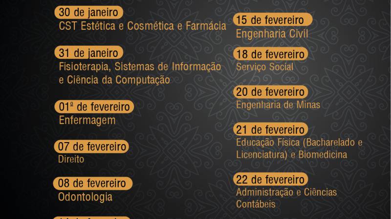 Confira a data da solenidade de cada curso: