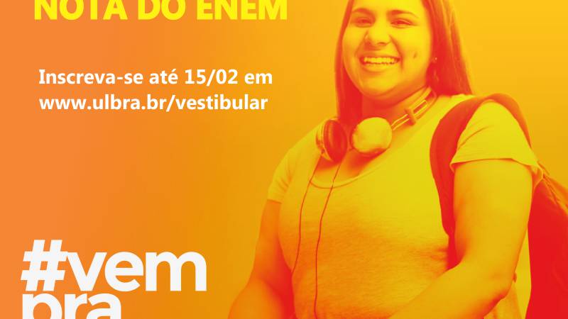 O processo seletivo é por meio da nota do Enem, e as inscrições estão abertas em www.ulbra.br/vestibular/palmas até 15 de fevereiro (sexta-feira).