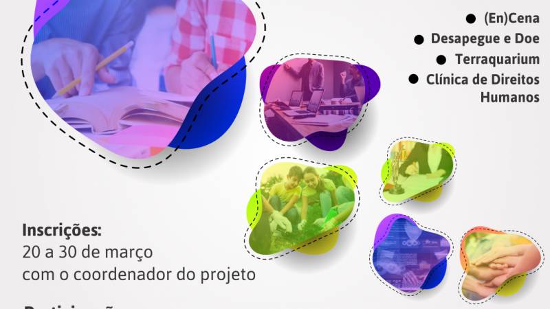 Ao todo serão ofertadas vagas de voluntariado para quatro projetos: Clínica de Direitos Humanos; Desapegue e Doe; (EN)Cena: a saúde mental em movimento; Terraquarium: educação e meio ambiente. Podem participar acadêmicos de todos os cursos do Ceulp/Ulbra. Interessados podem entrar em contato com a coordenação do projeto, entre os dias 20 e 30 de março.