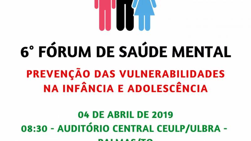 ‘Prevenção de vulnerabilidade na infância e adolescência’ é o tema do 6º Fórum de Saúde Mental voltado para educadores e trabalhadores do Sistema Único de Saúde (SUS). O Fórum que acontece no dia 04 de abril, no Centro Universitário Luterano de Palmas (Ceulp/Ulbra), está com inscrições abertas. Os interessados em participar podem se inscrever em http://twixar.me/WY1K.
