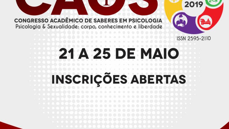 Estão abertas as inscrições para a 4ª edição do Congresso Acadêmico de Saberes em Psicologia – CAOS, que acontecerá dos dias 21 a 25 de maio de 2019.