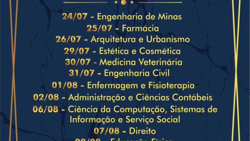 Confira a data da solenidade de cada curso: