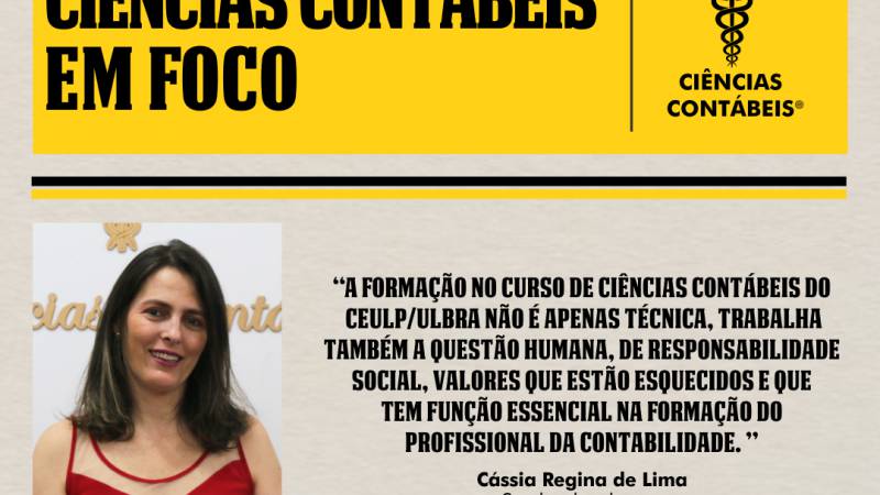 Cássia Regina de Lima é graduada em Ciências Contábeis pela Universidade Estadual de Maringá, mestre em Engenharia de Produção pela Universidade Federal de Santa Catarina e doutora em Engenharia de Produção e Sistemas pela mesma universidade. Atua como docente há cerca de doze anos e há seis é coordenadora do curso de Ciências Contábeis do Ceulp/Ulbra.
