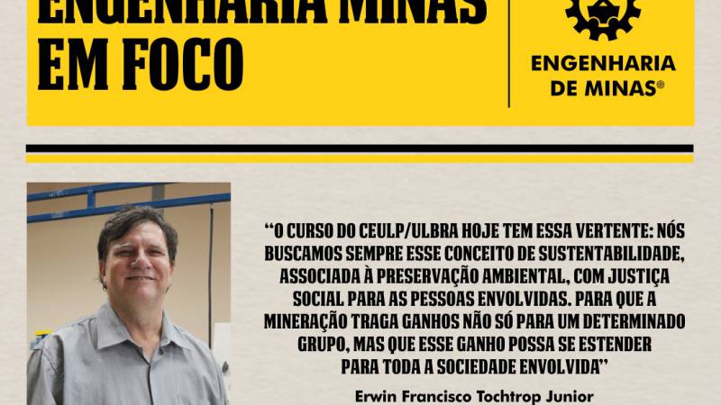 Erwin Francisco Tochtrop Junior é formado em Engenharia de Minas há 32 anos, pela Universidade Federal do Rio Grande do Sul (URRGS), mestrado em Engenharia de Minas, Metalúrgica e de Materiais pela mesma universidade e pós doutor pela Universitaet Stuttgart, na Alemanha. O professor está vinculado à Ulbra há vinte e dois anos e há cinco, atua como docente e coordenador do curso de Engenharia de Minas no Ceulp/Ulbra.