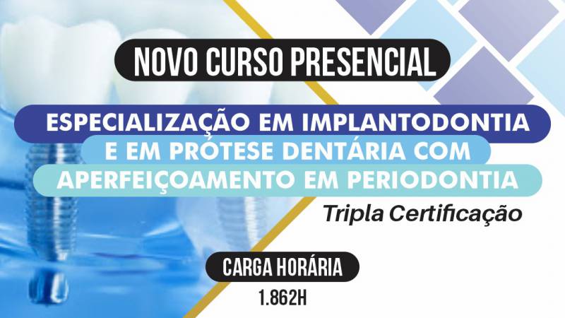O curso é destinado a cirurgiões-dentistas, devidamente registrados no Conselho Regional de Odontologia e além da tripla titulação, conta com um corpodocente qualificado e com experiência clínica na área, estrutura completa com radiologia e clínica odontológica, curso teórico-prático com atendimento de pacientes, além do material de consumo e o motor cirúrgico inclusos.