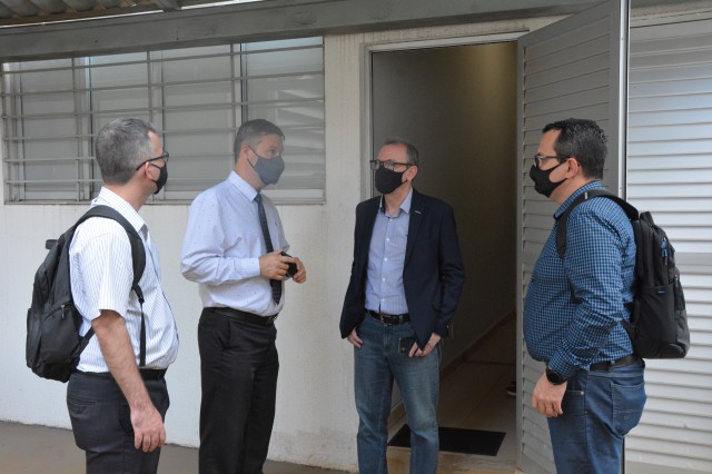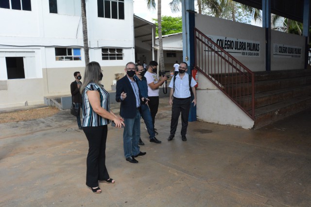 O reitor do CEULP-ULBRA, Marcelo Müller, e a diretora do colégio ULBRA-PALMAS,Viviane Stahnke, recepcionaram nesta quarta-feira (01) a mantenedora AELBRA, no primeiro dia de visitas do grupo formado pelo Diretor Executivo, Marcos Fernando Ziemer, o Superintendente de Operações, Fabiano Pereira Alves, e o Capelão Maximiliano Wolfgramm Silva. A primeira agenda da mantenedora em Palmas teve foco nas instalações do Núcleo de Atendimento à Comunidade (NAC) e ao Colégio ULBRA-PALMAS. Nesta quinta-feira (2) a AELBRA segue com a agenda de visitas, desta vez, para vistoriar a estrutura do Centro Universitário.