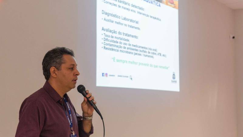 Durante as atividades os profissionais abordaram temas como zoonoses (Mormo), retirada da vacinação contra febre aftosa, sanidade e manejo de animais aquáticos. O Simpósio contou também com um coffee break para confraternizar e descontrair durante a realização do evento.