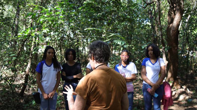 Hellen Dayana, aluna do primeiro ano do ensino médio, mostrou surpresa por conhecer um pedacinho do cerrado dentro de um campus universitário.