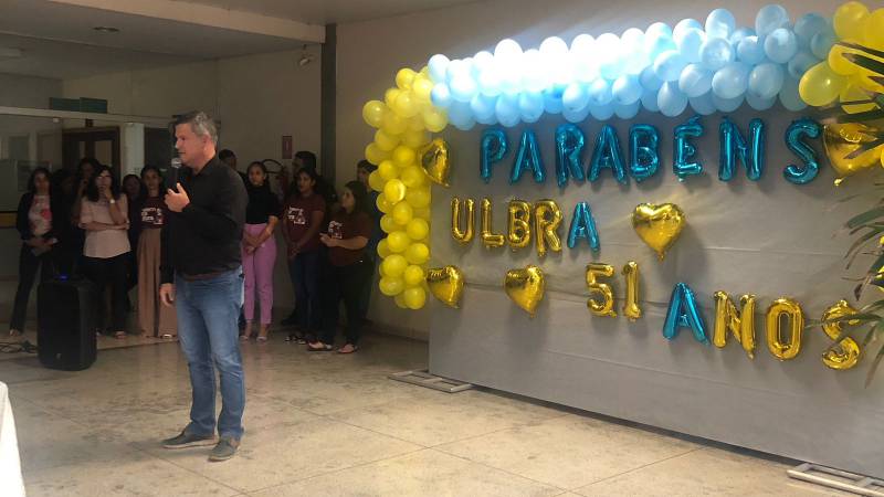 Nos 51 anos da ULBRA, o campus Palmas realizou nesta tarde uma singela comemoração com aqueles que fazem parte dessa história. Professores, servidores e alunos se reuniram no hall e confraternizaram neste momento.