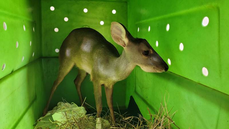 Um exemplar fêmea da espécie Veado-catingueiro (Mazama gouazoubira) deu entrada na tarde do dia 24/01 com suspeita de atropelamento na Avenida Teotônio Segurado, sendo resgatado pela Guarda Metropolitana Ambiental e encaminhado pelo Centro de Fauna do Naturatins-CEFAU. Após a internação na ala de animais silvestres do hospital veterinário, o animal passou por uma avaliação física que não detectou suspeita de fratura. Foram realizadas limpeza nas escoriações e a aplicação de analgesia.