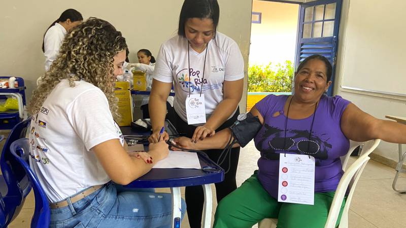 Comprometida em cuidar das pessoas e promover saúde e justiça social, a Ulbra Palmas marcou presença na 1ª edição do Pop Rua Jud Tocantins, realizada na sexta-feira, 22, na Escola Estadual Maria dos Reis Barros, no setor Taquari. Acadêmicos e professores dos cursos de Enfermagem, Direito, Medicina Veterinária, Biomedicina e Medicina se uniram para atender a comunidade com dedicação e excelência.