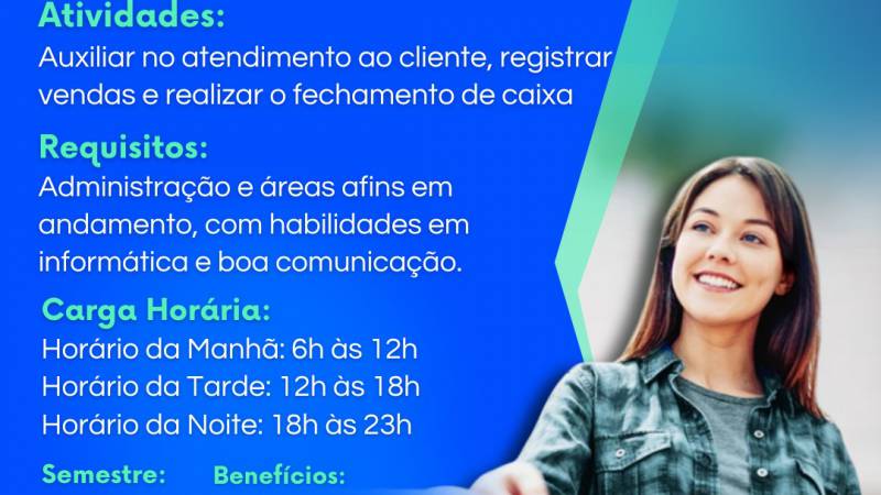 Requisitos: Cursando Administração ou áreas afins, com habilidades em informática e no Pacote Office, boa comunicação e capacidade de trabalho em equipe