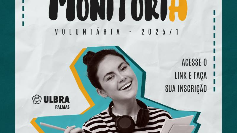 Estão abertas as inscrições para a monitoria voluntária acadêmica, uma oportunidade para estudantes de todos os cursos da Ulbra Palmas que desejam aprofundar conhecimentos, desenvolver habilidades didáticas e enriquecer o currículo. O prazo para candidatura vai até 8 de março de 2025 e as vagas serão distribuídas conforme a demanda dos professores orientadores de cada disciplina.